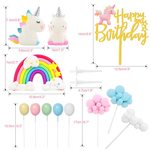 ☆:::☆【仕様】(1)材質:ケーキトッパーはアクリルであり、虹とユニコーンと風船はプラスチックとゴムであり、風船雲はフワフワの素材である。全部は安全無毒、環境に優しい材料です。(2)サイズ:ユニコーンは長さ5.8幅4高さ7.1cmであり、ケーキトッパーは高さ14幅12.5cmであり、虹は高さ7幅10.8cmであり、風船雲は高さ17cmであり、風船は13.5cmである。
