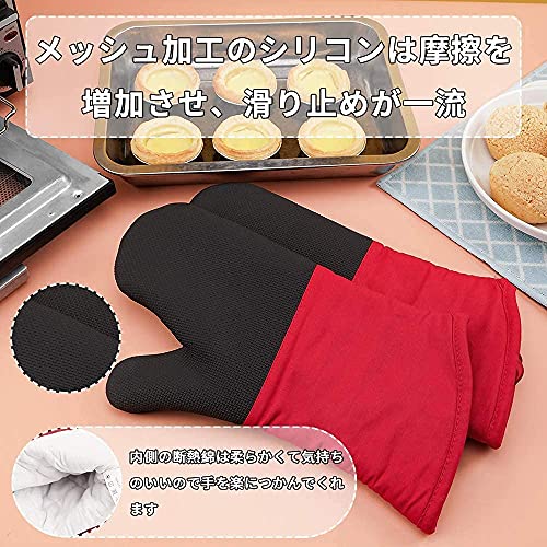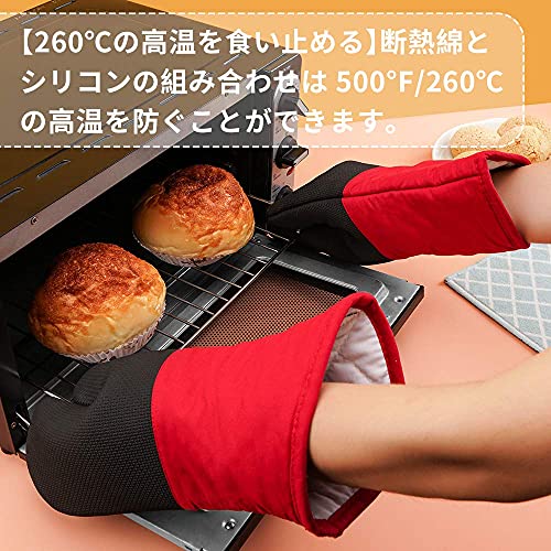Toprime オーブンミトン 耐熱ミトン シリコン手袋 鍋つかみ 断熱 滑り止め 業務用 耐熱温度260[度] やけど防止 ク