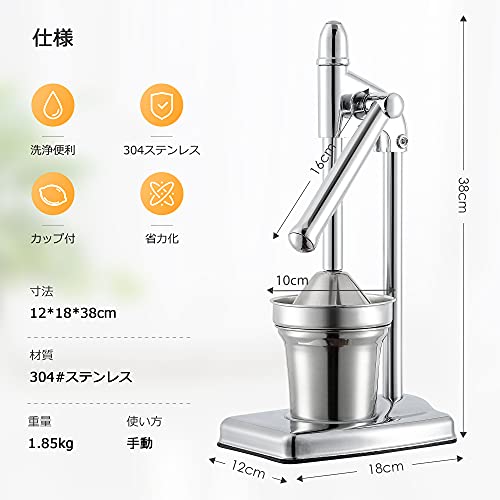 Hanchen 手動ジューサー フルーツしぼり 1.85kg軽量 柑橘類 ハンドジューサー カップ付 フレッシュジュース 果汁