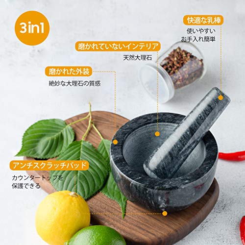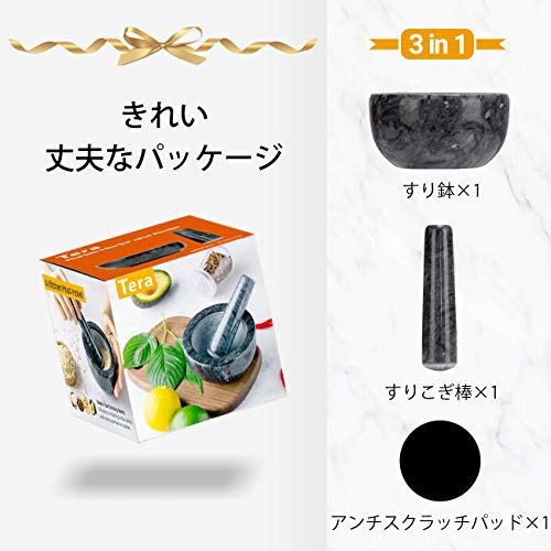 Tera 大理石 石臼 すり鉢 すりこぎ棒 セット 離乳食 磨かれた天然乳鉢 乳棒 石うす にんにくつぶし 薬研 キッチ
