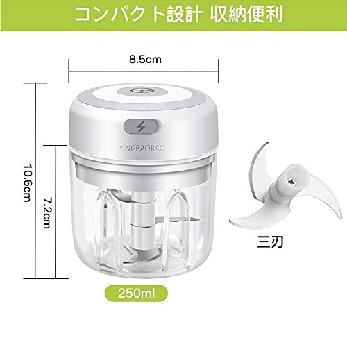 みじん切り器 電動 みじんきりチョッパー 野菜カッター みじん切りカッター 調理器具 調理道具 250ml USB充電式