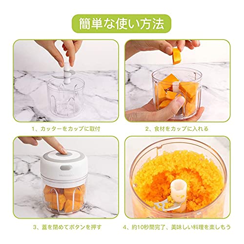 | 商品名 | みじん切り器 電動 みじんきりチョッパー 野菜カッター みじん切りカッター 調理器具 調理道具 250ml USB充電式 |