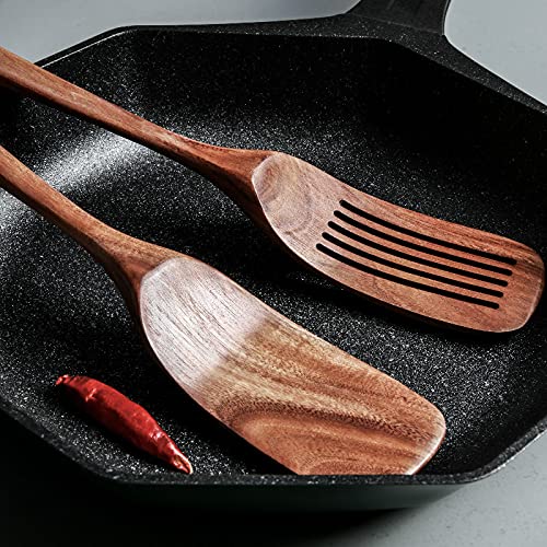 【天然木製へらセット】:天然アカシア木製、接着剤なし、無毒で無味であり、安全に使用することができます。木製へらセットはふっ素樹脂加工の鍋等や食器を傷つけにくい、金属や樹脂よりも温もりという安心感があります、金属のカチャカチャ音が苦手な方も安心です。最高のキッチン用品です。