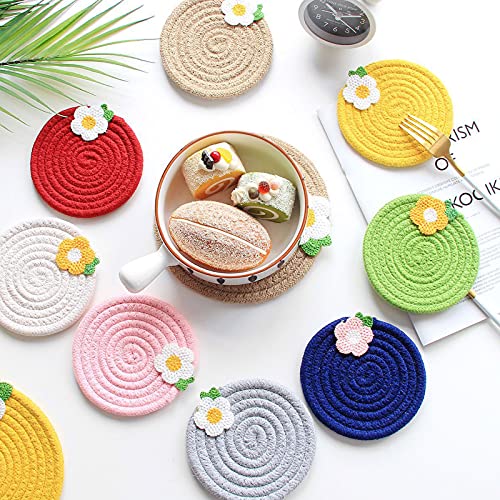 Hakona 手編み 鍋敷き おしゃれ 耐熱 なべしき かわいい 北欧 断熱マット 綿 吸水 コースター 丸型 花柄 滑り止