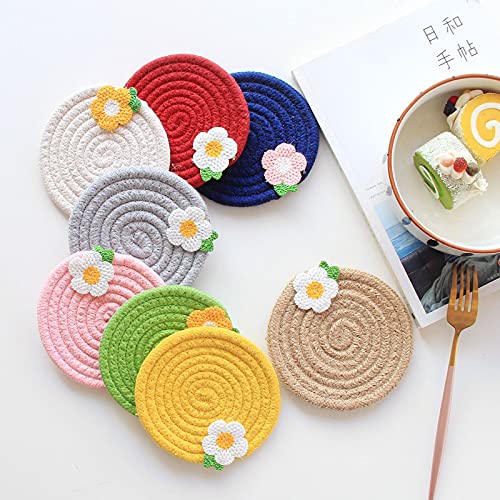 【おしゃれのかわいい花柄】丸型断熱パッド、その上にかわいい小さな花の装飾があります。北欧風、それは実用的で美しい、ホームキッチンのダイニングテーブルの装飾としても使