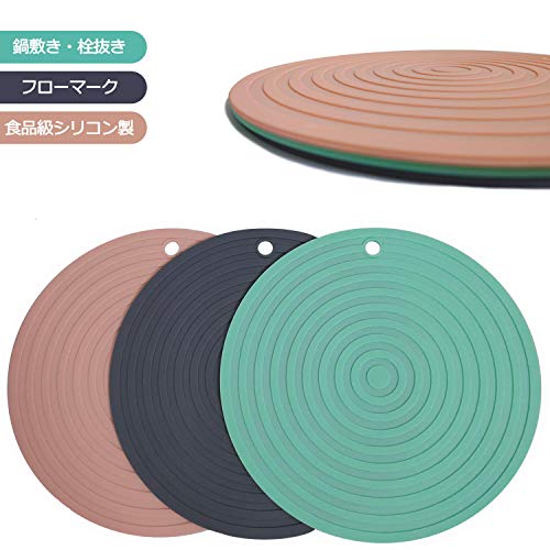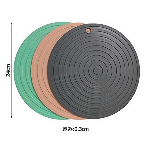 耐熱鍋敷き 丸型 2枚セット 24cm シリコン製 薄型 フローマーク 栓抜き 滑り止め 北欧風 快速放熱 壁に掛けられ