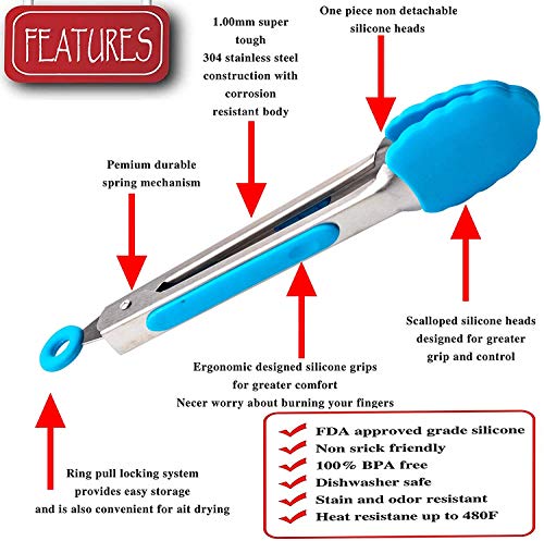 サイズ:各小さなフードトングの長さは7インチで、ハンドルはよく磨かれ、滑らかで持ちやすく、親指で休むのに適し、グリップとコントロールが良好です。これらのシリコントングは、手や腕を危害から安全な距離に保つのに役立ちます。