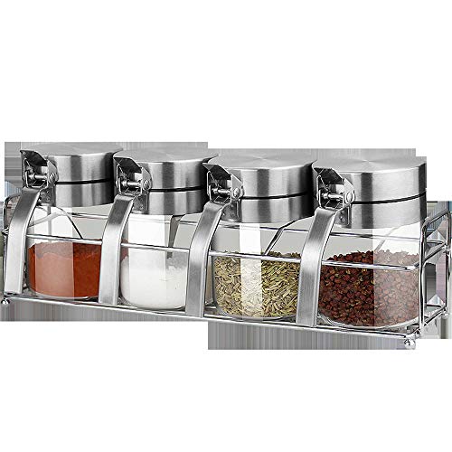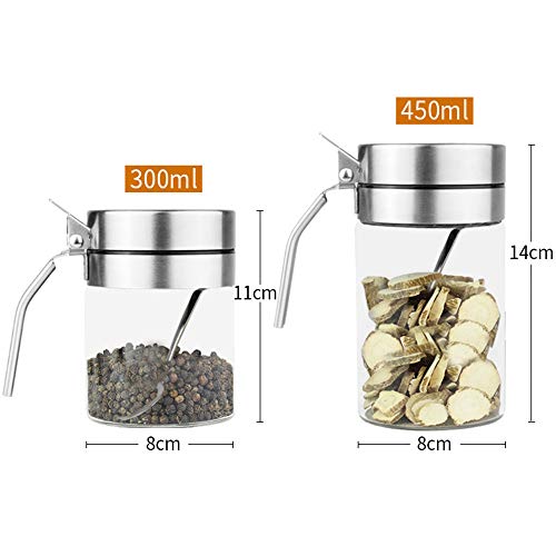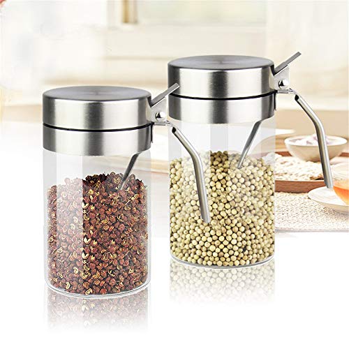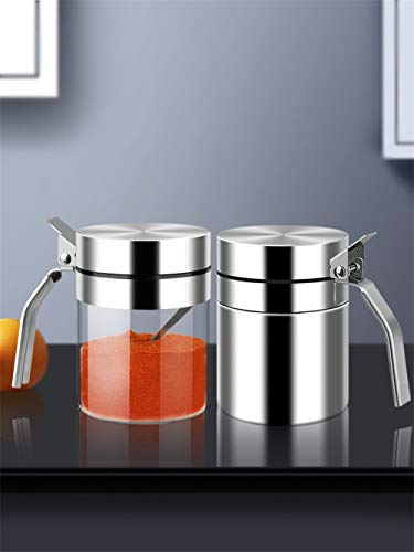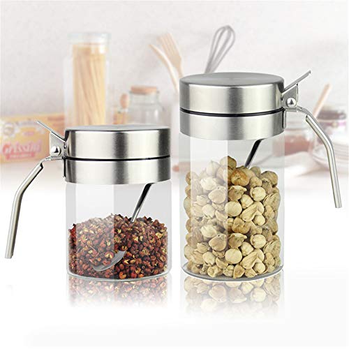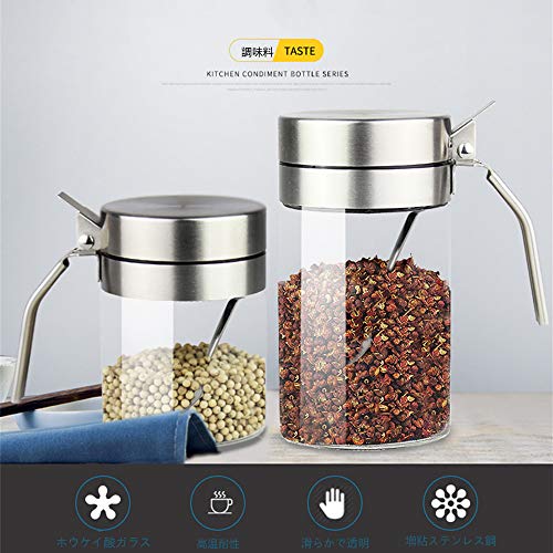 Huiyu 塩容器砂糖容器調味料瓶調味料容器砂糖容器耐熱ガラス粉末調味料容器ステンレス鋼容器高ホウケイ酸ガ