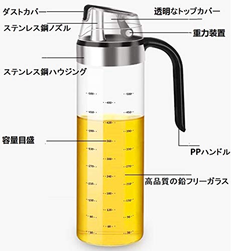 【安全性】ボトル本体は高品質のホウケイ酸ガラス製で、安全で健康的です。注ぎ口は自動的にひっくり返され、キッチンライフがより快適になります。注ぎ口は使用後に自動的に閉じられ、ほこりや湿気に対して効果的です