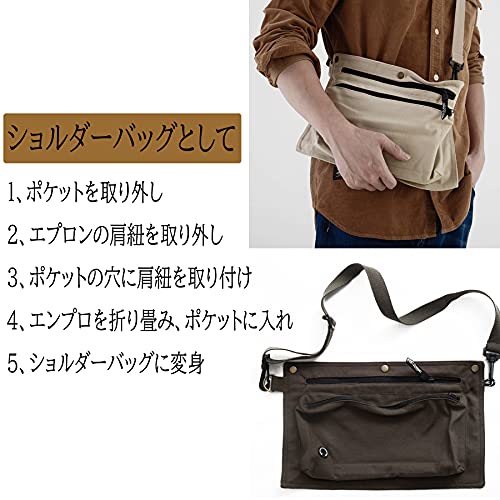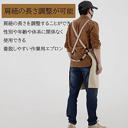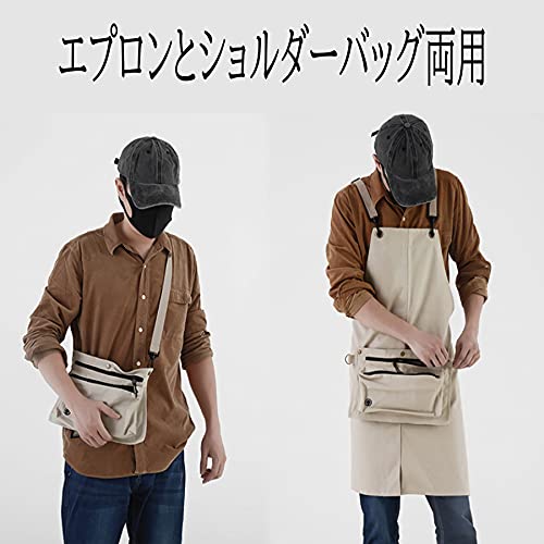【エプロンとショルダーバッグ両用】エプロンとショルダーバッグとして両用が可能です。取り外し可能なポケット、作業完了した時にバッグとしてエプロンなど収納することが可能です。収納環境もきれいになれます。100%コットンのキャンバスを採用しており、収縮しにくく、しわになりにくいなどの特性があります。布の自体は厚くて丈夫ですが、布の表面が平らで、通気性、防水にも優れております。