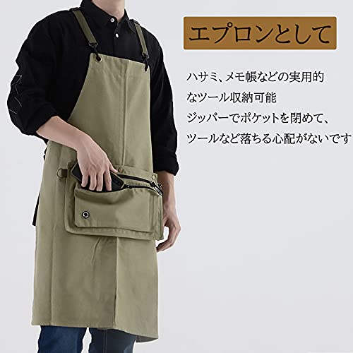 【機能的なポケットエプロン】多機能ポケットは、実用的なデザインになっており、ペン、スマートフォン(携帯電話)、ハサミ、メモ帳などの実用的なツールを収納することがでいます。ジッパーでポケットを閉めて、ツールなど落ちることの心配がないです。