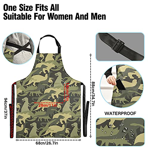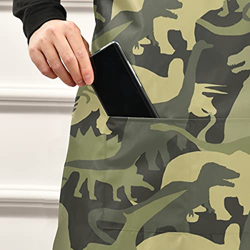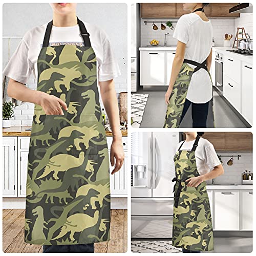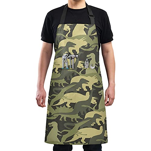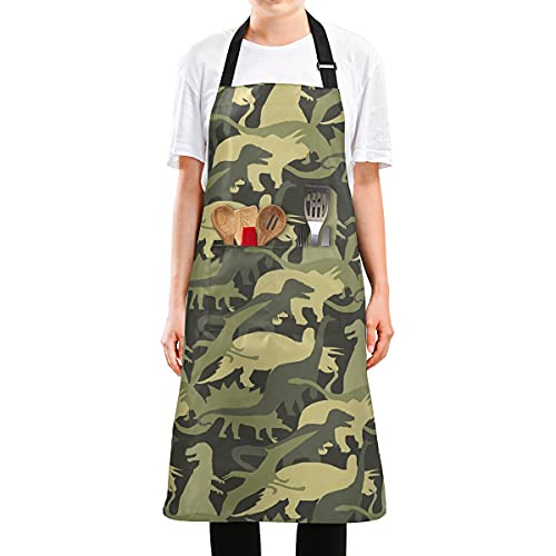 SUKAU エプロン 恐竜 迷彩柄 レデイース かわいい おしゃれ メンズ 首掛け 撥水 シワになりにくい 家庭用 保育