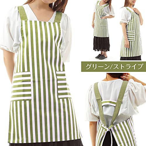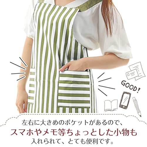 Cute Wink エプロン 北欧風 おしゃれ かわいい 女性用 シンプル H型 シワになりにくい グリーン/ストライプ