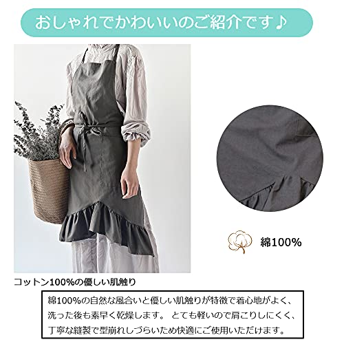 TONGMO エプロン おしゃれ カフェエプロン ロング かわいい レディース ロング丈 首掛け式 保育士フリーサイズ