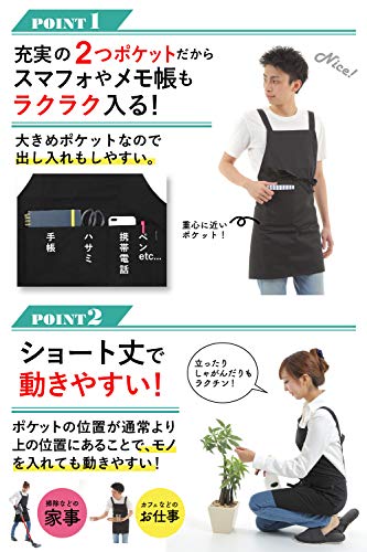 ?【優れたデザイン、動きやすい】 モデル身長:160cm エプロン丈:72cm 動きやすい長さにしている。 ポケットの位置も通常より上の位置にしています。重心に近くすることで、 モノをいれても動きやすいように工夫している。逆にポケットに手を入れにくくしている。 メモ帳はもちろん、お財布や携帯電話が入るようにポ