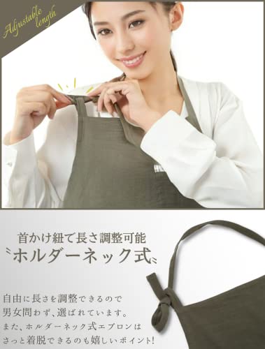 Amarikan エプロン メンズ レディース 保育士 リネン ポケット付 無地 首掛け