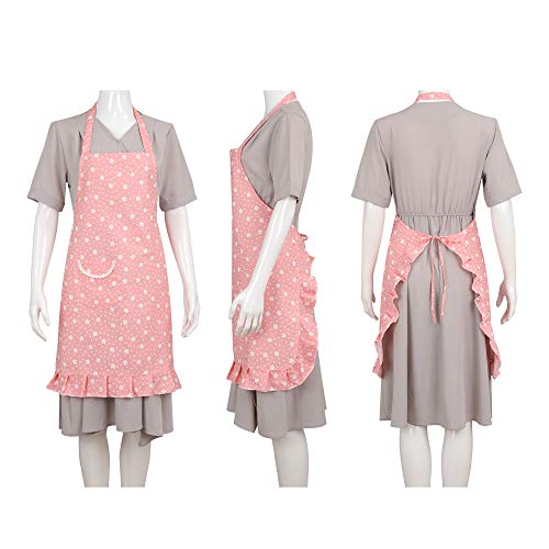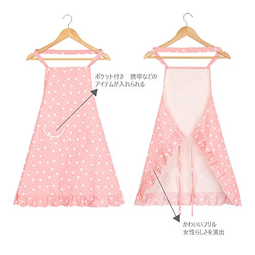【デザインポイント】?ポイント1:かわいい花柄デザインとフリルの裾、女性の美しさや可愛さを上品に演出でき、このおしゃれなエプロンを着て家事やお掃除でも楽しくなれる。?ポイント2:前にポケットがあり、携帯や他のアイテムが入られて、とても便利です。?ポイ