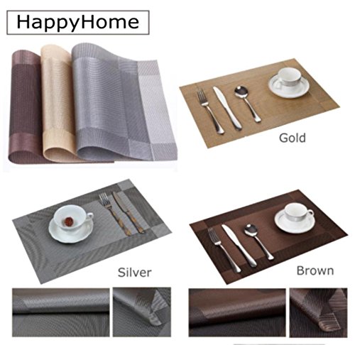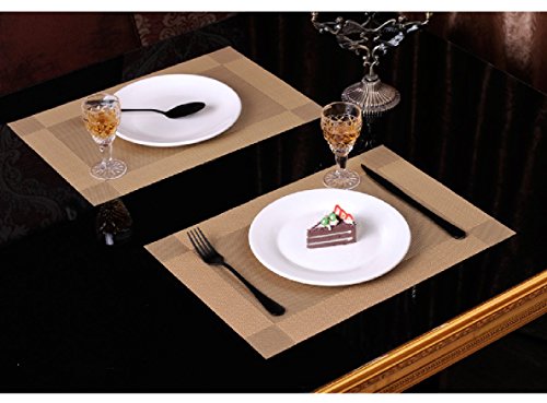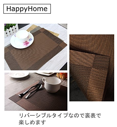 ランチョンマット 4枚セット リバーシブル撥水 防汚 丸洗いOK お手入れ簡単 30×45cm (ゴールド)