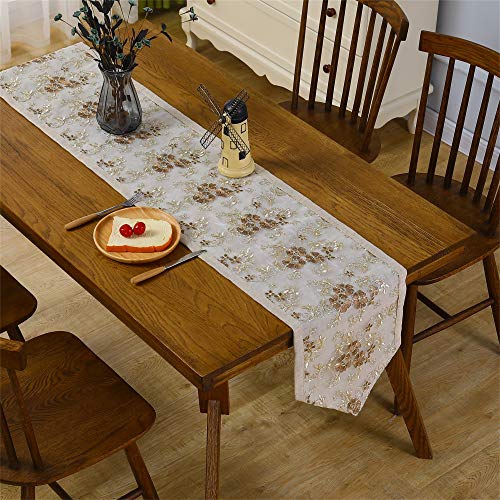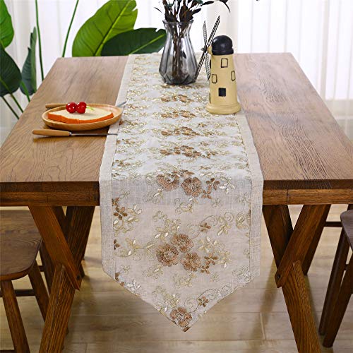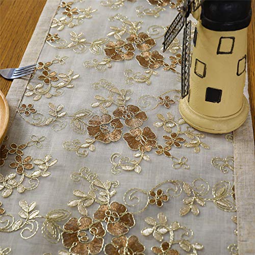 精巧なレース刺?テーブルランナー おしゃれなキッチン防塵テーブルクロス コーヒー色 210cm
