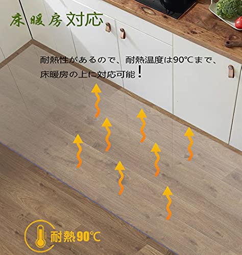 お手入れが簡単PVCキッチンマット:透明 キッチンマット 新世代のアップグレードされたPVC素材でできており、透明性が高く、味がなく、収縮しません,普段のお手入れは簡単な拭き取りで十分です.帯電防止機能も付き、埃がつきにくく掃除しやすいです。透明で床が若干透けて見えるので、圧迫感がなくお部屋の雰囲気を損ないません。キッチン違和感なくマッチします。また、耐熱性があるので床暖房の上でも使用OK.