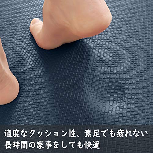 【プレミアムPVC材質】耐久性があり、環境にやさしいPVC材質を使用したこのキッチンマットは、優れた耐摩耗性を持ち、丈夫で破れにくい。キッチンなど壊れやすいものや鋭い製品が多い場所には一番ピッタリ。低反発デザインので、ソフトな踏み心地で長時間の立ち仕事による足への負担を軽減し、冬場にも床からの冷気も和らげます。
