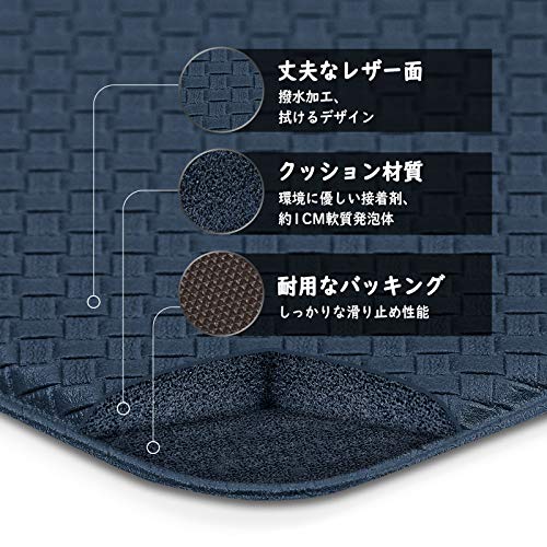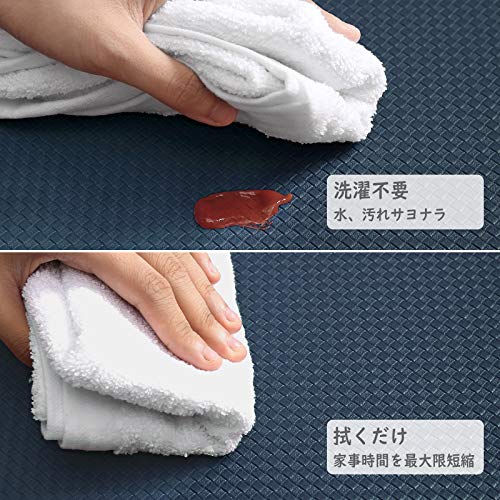 【洗濯不要、お手入れ簡単】撥水加工済み、油や調味料や水等々をティッシュや布で拭き取ると綺麗になります。布やポリエステル製キッチンマットに比べると、洗濯と乾燥要らずにマットの清潔さをキープすることができます。完全に毛羽立ちのないデザインで、嫌な臭いやカビの発生を大幅に低減し、家事を最小限に抑えます。