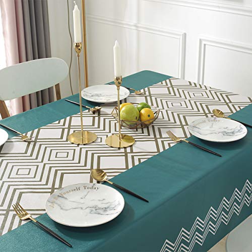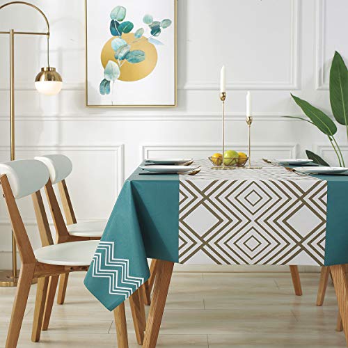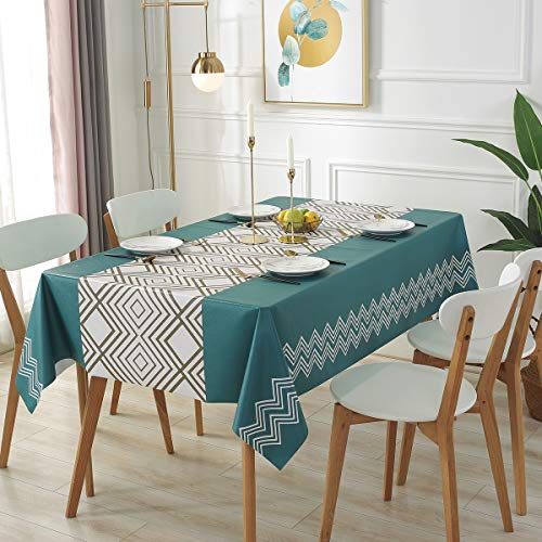 DARUITEテーブルクロス 撥水 北欧 厚手PVC素材 おしゃれ (137x185cm,幾何柄)