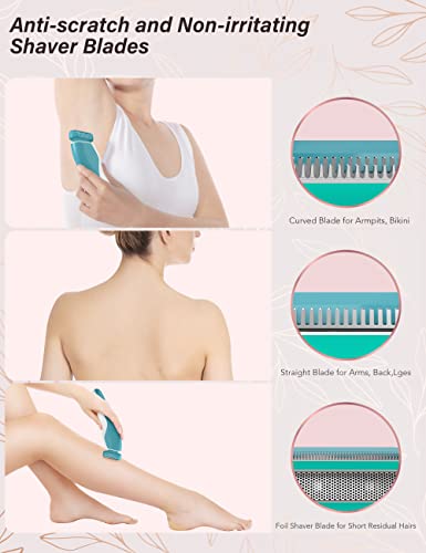 【お肌に優しいヘッド】広範囲に剃る女性用電気かみそりは、脇、手、足、ビキニなどに効果的に対応できます。ビタミンEが豊富なアロエ潤滑ストリップは、水に触れると保湿石鹸を放出し、引っかき傷を防ぎます。