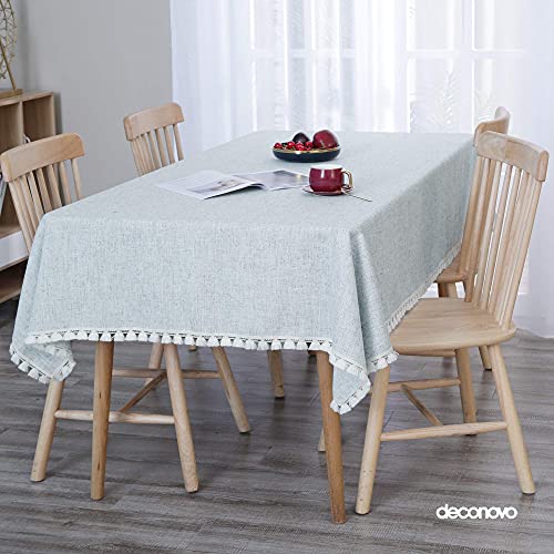 Deconovo テーブルクロス 140*220CM ライトグレー 撥水 汚れ防止 タッセル 耐熱 北欧 厚手 長方形