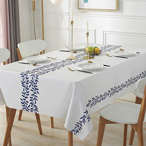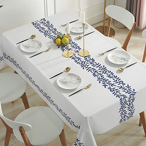 Qualsen テーブルクロス長方形 北欧 テーブルカバー 撥水 防水 防油 PVC製 おしゃれ 137×180cm(アイビー柄)