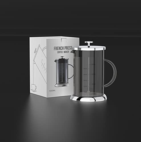 MERMOO YILAN コーヒー メーカー フレンチプレス コーヒープレス 1000ml 8杯用 ガラス製 耐熱 分解洗浄 特製フィル