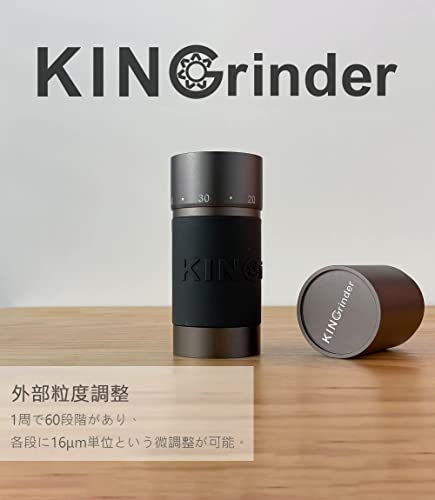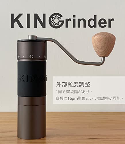 キングラインダーK6 手挽きコーヒーミル。容量は35 グラムで、外部粒度調整付き、均一性を維持するコニカル