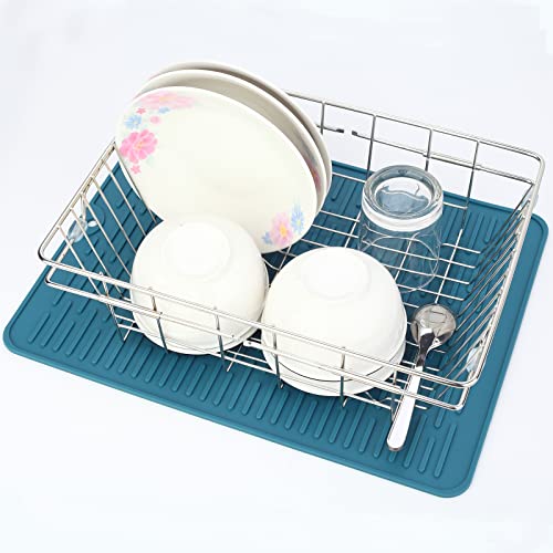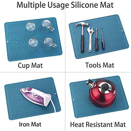 水切りマット キッチン 食器 乾燥用マット 大判シリコン 速乾 丸めて収納 断熱マット 滑り止 (ブルー)