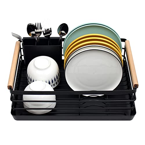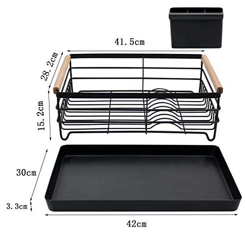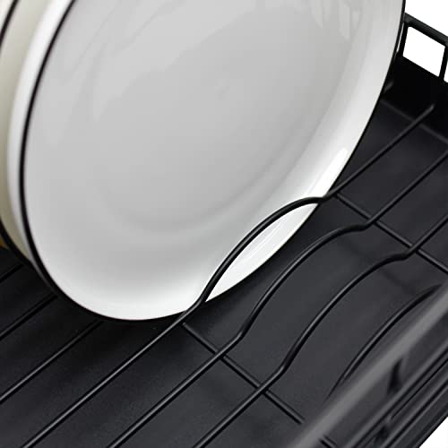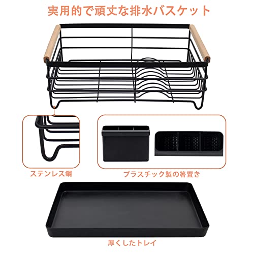 Poofzy 食器 水切りラック ステンレス、 水切りカゴ 厚めのトレー付き キッチン用 (黒)