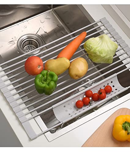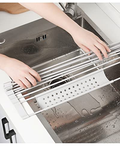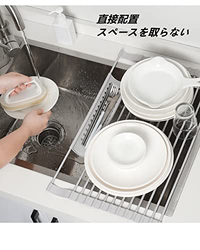 転がしやすく、保管しやすく、掃除が簡単:掃除が簡単で、水ですすぐだけです。 これは、使用したときにのみ拡張する汎用性の高いキッチンツールです。 使用後は、丸めてコンパクトに収納でき、引き出しなどの狭いスペースに収納できます。 スペースを取らず、とても便利なドレンスタンドです。