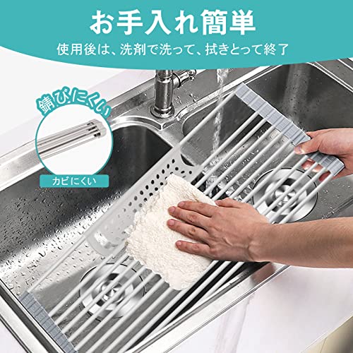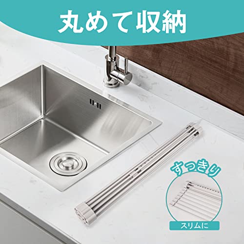 コンパクト収納:折り畳み式の水切りラックです。洗い物のときなど使わないときは、ぐるぐる丸めてコンパクトになるので邪魔になりません。場所を取らないから、使ったら片付けたい人にぴったりサイズです。