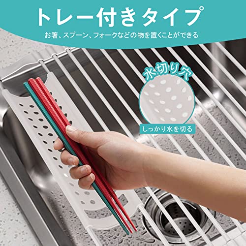 水切りトレー付き:小物を置けるトレーが付きます。お箸、スプーン、フォークなどのカトラリーを置くことができます。トレーの底には水切り穴があるので、しっ