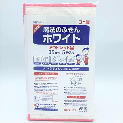 日本デンソー お徳用 魔法のふきんホワイト アウトレット品 35cm 5枚入 日本製 キッチンクロス ふきん 台ふき