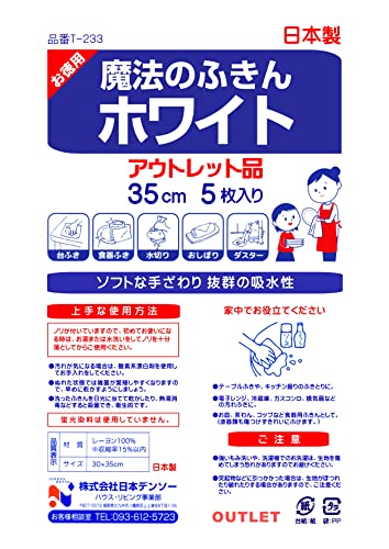 | 商品名 | 日本デンソー お徳用 魔法のふきんホワイト アウトレット品 35cm 5枚入 日本製 キッチンクロス ふきん 台ふき |