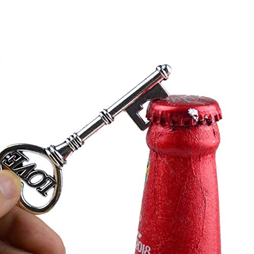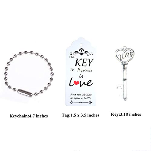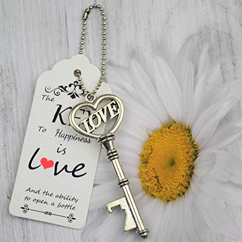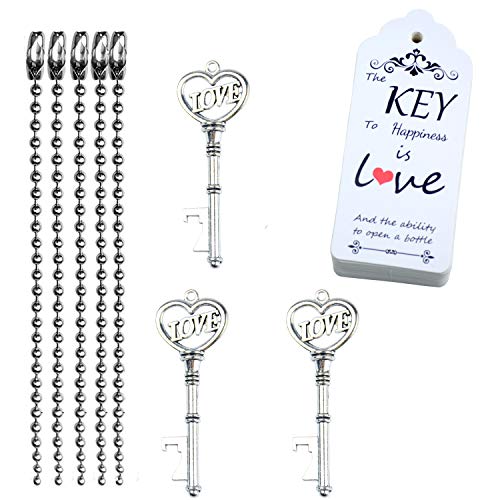 Makhry 52pcsヴィンテージスケルトンキーボトルオープナー付きラブハートエスコートありがとうタグとキーホル