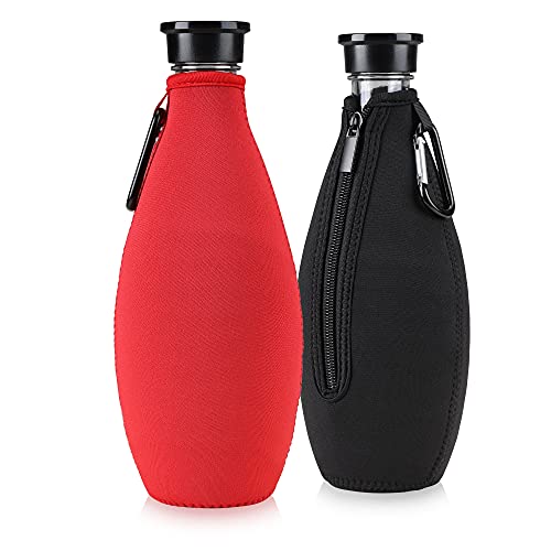 kwmobile 2x Soda Stream 615ml ボトルカバー ネオプレン製 - ソーダストリーム マイボトル 傷防止 スリーブ - 黒色/赤