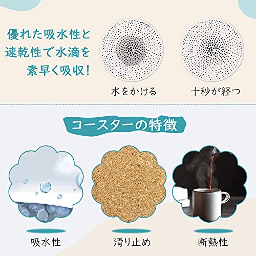 SAYOK コースター 2枚セット セラミックコースター コップ敷き 茶バッド コルク裏面 高吸水率 速乾性 抗菌性 断