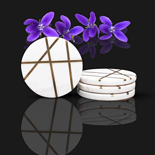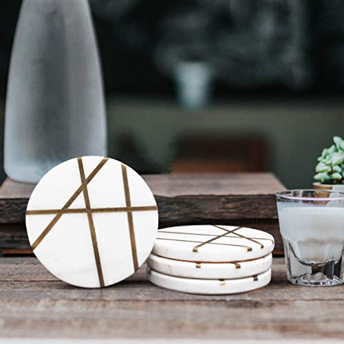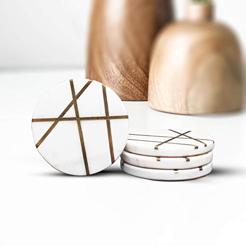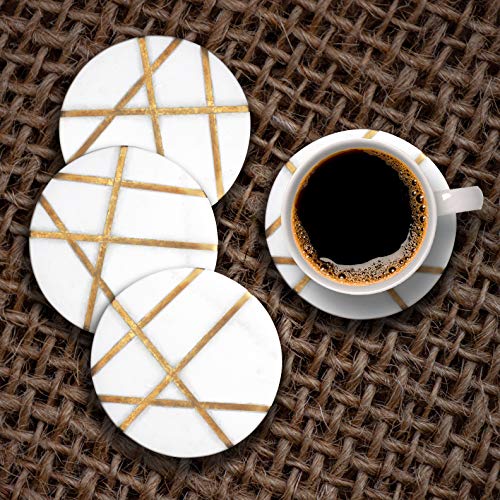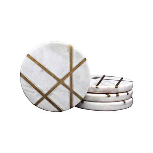 ? マーブルコースター: ホワイトのマーブルロックコースターにゴールドのラインデザイン。 それぞれに丸い形と模様があります。 母なる自然は、それぞれのコースターを独自の習慣、サイズ、厚さで独特にします。 どんな表面も清潔に保つのがっちりした作りで、これらのデザイナーコースターはコーヒー休憩に価値ある感覚をもたらします。 サイズ (長さ×幅×高さ)約4.1×4.1×2.15インチ。 パッケージにはコースター4枚が含まれます。