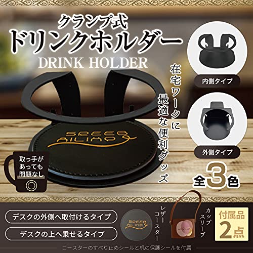 【在宅ワークに最適】クランプ式ドリンクホルダー(コースター,スリーブ,滑り止めシール付き)になります。在宅ワークやオフィスで、コーヒーや紅茶などを飲むときにとても便利なのがこの商品です。うっかりカップを倒してしまい、中身をこぼしてしまい、書類を汚してしまったり、パソコンを壊してしまったりする心配は、この商品で解消されます。お客様のご使用環境により、AタイプとBタイプをお選びいただけます。