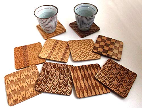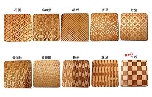 MokuPro 木製コースター 無垢材(カバ材) 和柄コースター 全面彫刻 全10種類 (矢絣)
