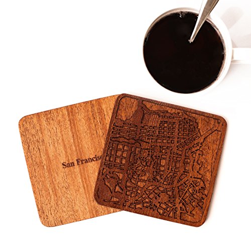| 商品名 | サンフランシスコマップコースター、4枚セット、シティマップ木製コースター、オリジナルデザイン手作りギ |