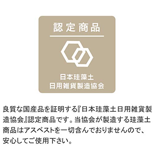 良質な国産品を証明する『日本珪藻土日用雑貨製造協会』認定商品です。当協会が製造する珪藻土商品はアスベストを一切含んでおりませんので、安心してご使用下さい。