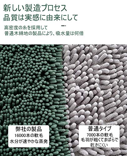 【吸水・速乾・清潔】:欧州連合の基準に合致するバスマットがお風呂上がりの水分を素早く吸収してくれて,びっしりと密集した繊維の一本一本は吸水性抜群でお風呂あがりの足を包み込みます。表面には長く使えるポリエステルの生地を採用し、優れた速乾性を実現できます。イヤなニオイの元となる菌の増殖を抑える抗菌作用があります。