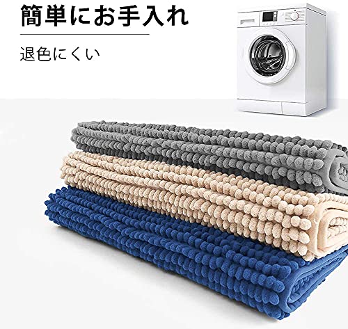 「高い吸水性」バスマットは大粒状な絨毛素材で、吸水性が優れたです。また、球状のような構造で表面積を広げ、水分を多く吸い上げ、よく吸って速く乾います。