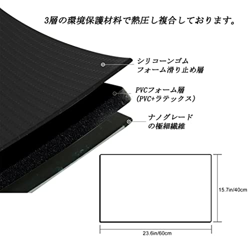 「3層の環境保護材料」サイズ60 40 0.4cm。ナノグレードの極細繊維+ PVCフォーム層+シリコーンゴムフォーム滑り止め層で、熱圧し複合しております。3層の材料は、高品質の環境保護グレードです。もっと安心してお使いいただけます。
